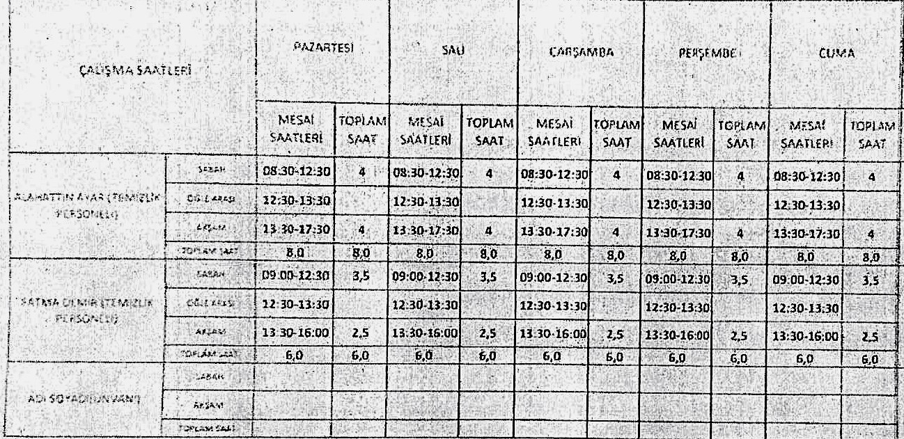 HİZMETLİ PERSONELİ ÇALIŞMA SAATLERİ